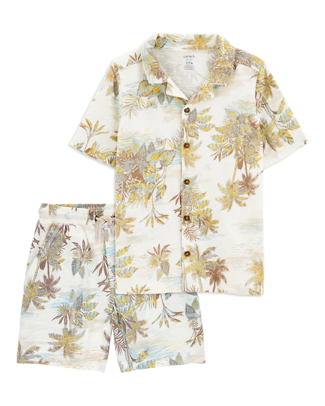 Kid 2-Piece Palm Tree Button-Down Shirt & Shorts Set