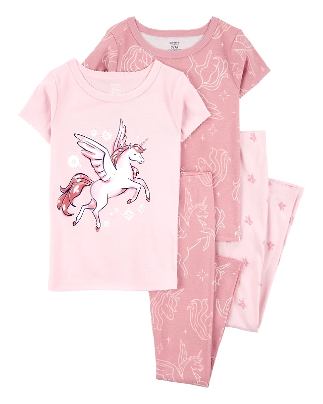 Girls Unicorn Print 100% Cotton Long-Sleeve 4-Piece Pajamas - Purple