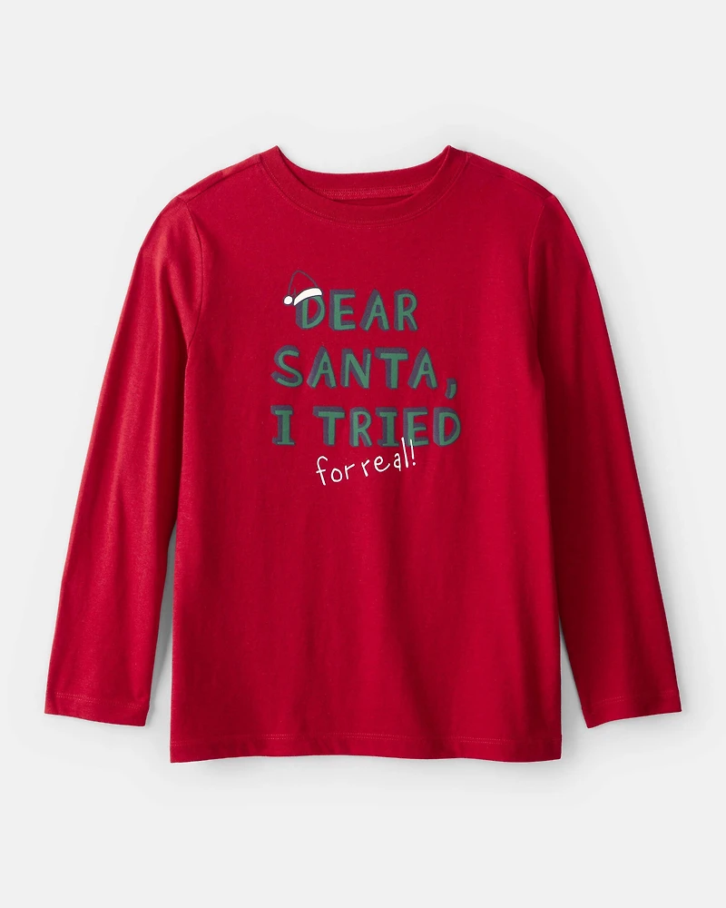 This festive favorite features a playful Santa graphic and the cheeky message, “Dear Santa, I tried, for real!”—perfect for capturing the spirit of the season. Crafted from a cozy cotton blend, this relaxed-fit tee ensures your little ones stay comfy while they dash through the snow or cozy up by the fire. With long sleeves to keep them warm and easy styling options for jeans or leggings, it’s the ultimate holiday essential for playdates, family gatherings, or festive movie nights. Trust us, this tee is sure to become a cherished part of their winter wardrobe!