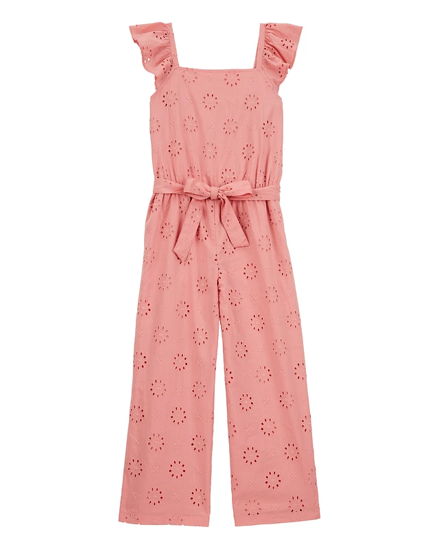 Kid Eyelet Tie-Front Jumpsuit - Pink