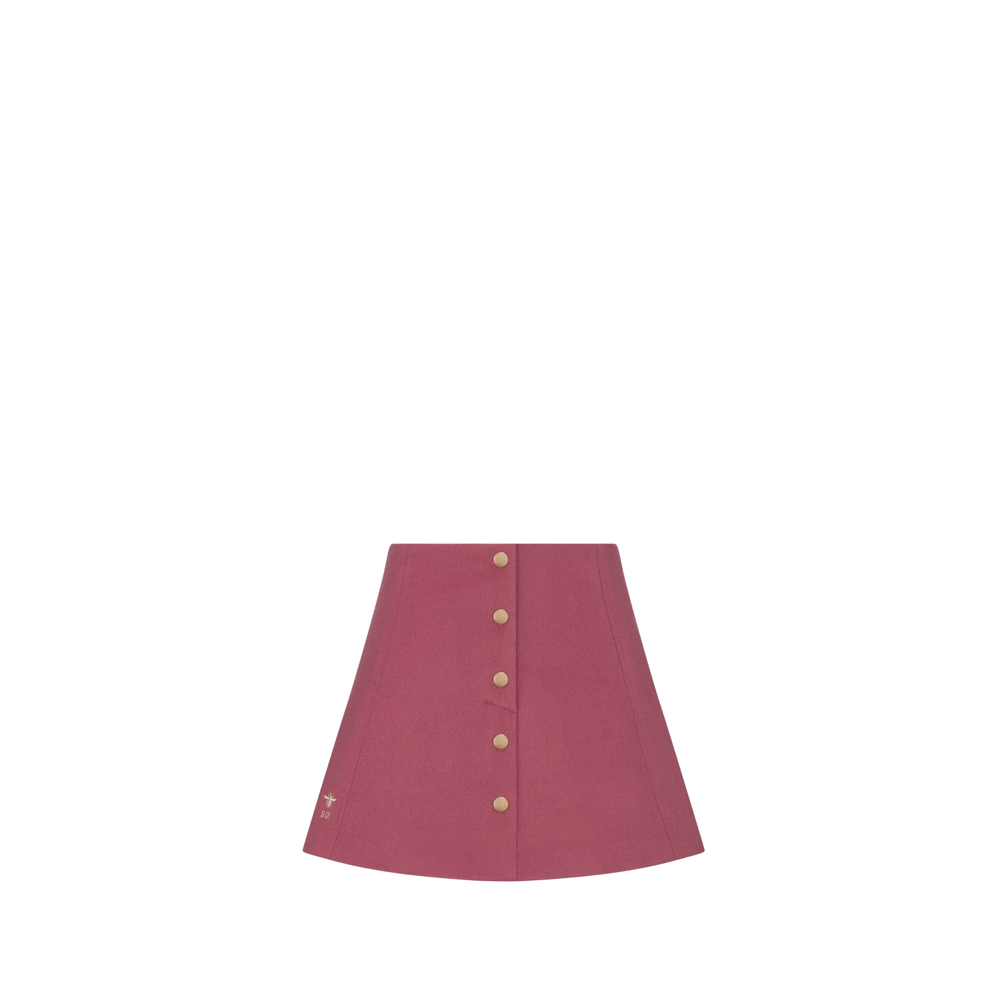 The skirt showcases a timeless silhouette. Crafted in antique pink wool, it is enhanced by a gold-tone Dior bee embroidery at the hem. A placket with gold-finish metal buttons completes the front. The skirt can be styled with a white shirt and the matching peacoat from the collection for a chic seasonal look.