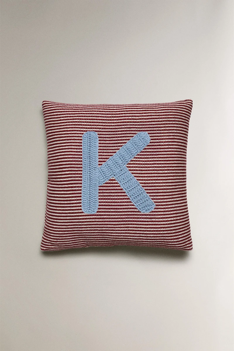 KIDS' EMBROIDERED LETTER K CUSHION