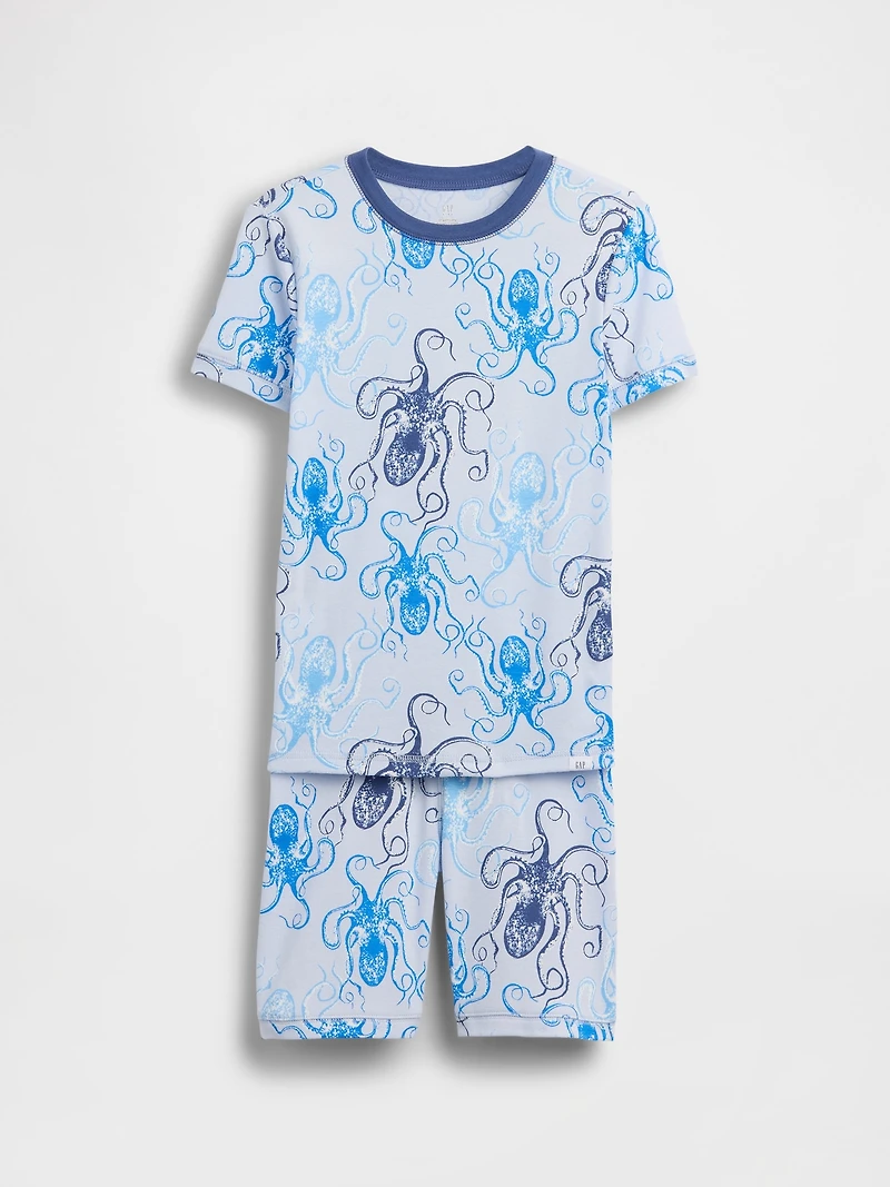 Kids Organic Brushed Cotton Octopus PJ Shorts Set