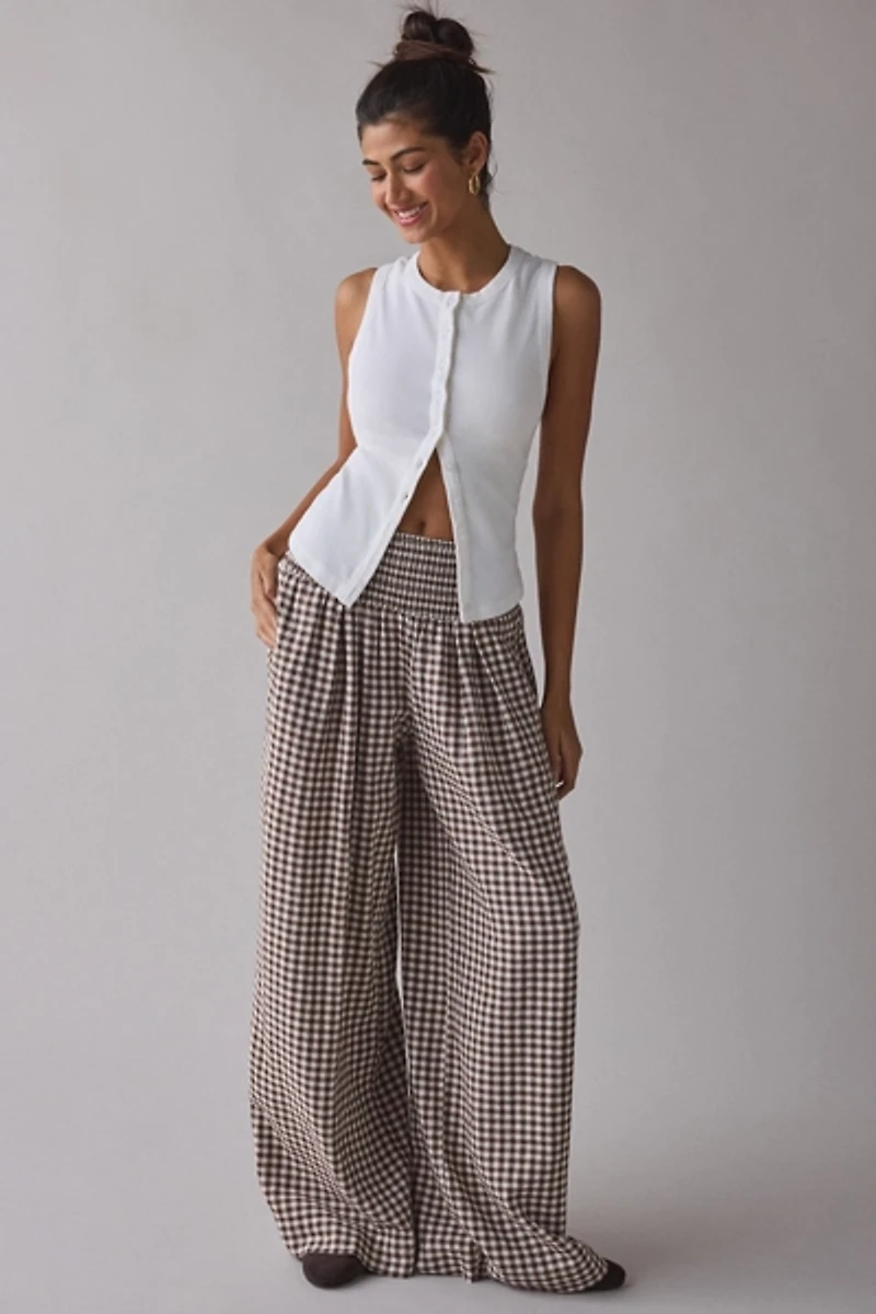 Kimchi Blue Caroline Smocked Wide Leg Linen-Blend Pant