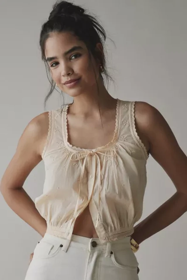 Kimchi Blue Clover Lace-Trim Cropped Tank Top