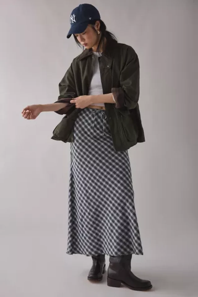 Kimchi Blue Lexi Check Low-Rise Cotton Maxi Skirt