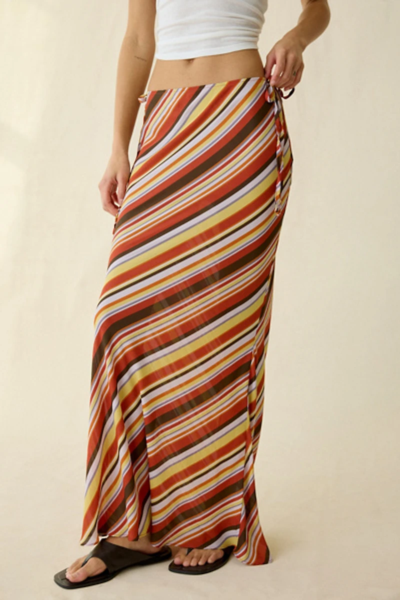 Oh-so-boho Kimchi Blue maxi skirt designed in light, flowing chiffon perfect for warmer days. Long printed skirt in a body-skimming column silhouette featuring a low-rise waistline, side-tie cutout details and ankle-skimming length. Only at UO.