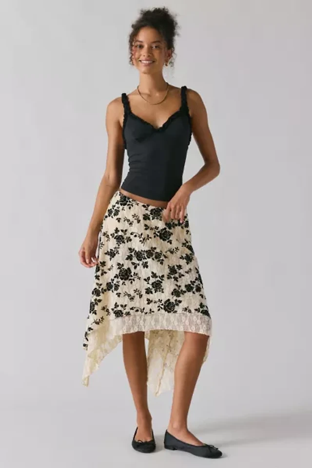 Kimchi Blue Sheer Beauty Flocked Lace Hanky Hem Midi Skirt