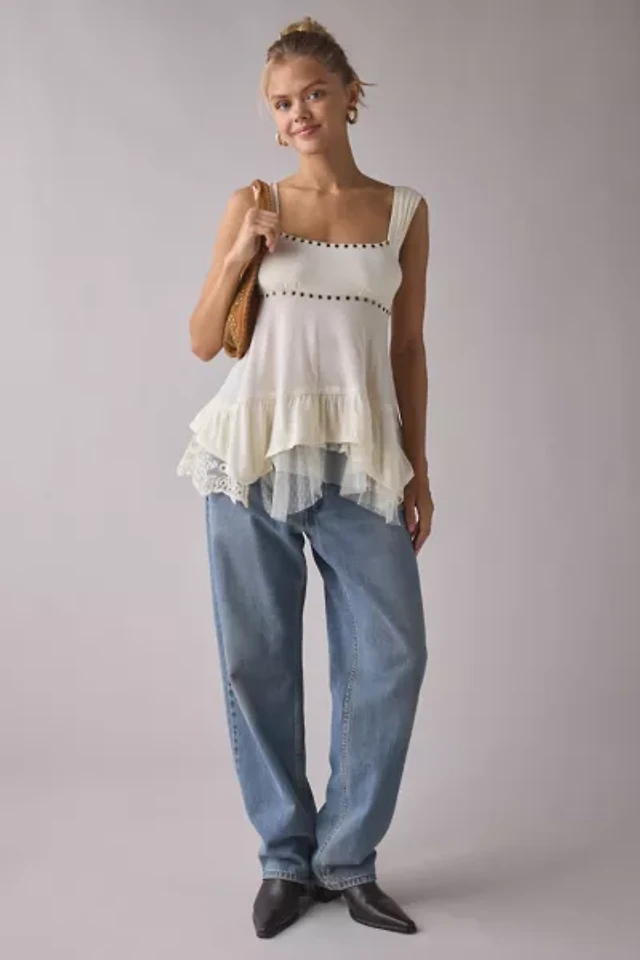 Kimchi Blue Asterid Lace Trim Asymmetric Babydoll Cami