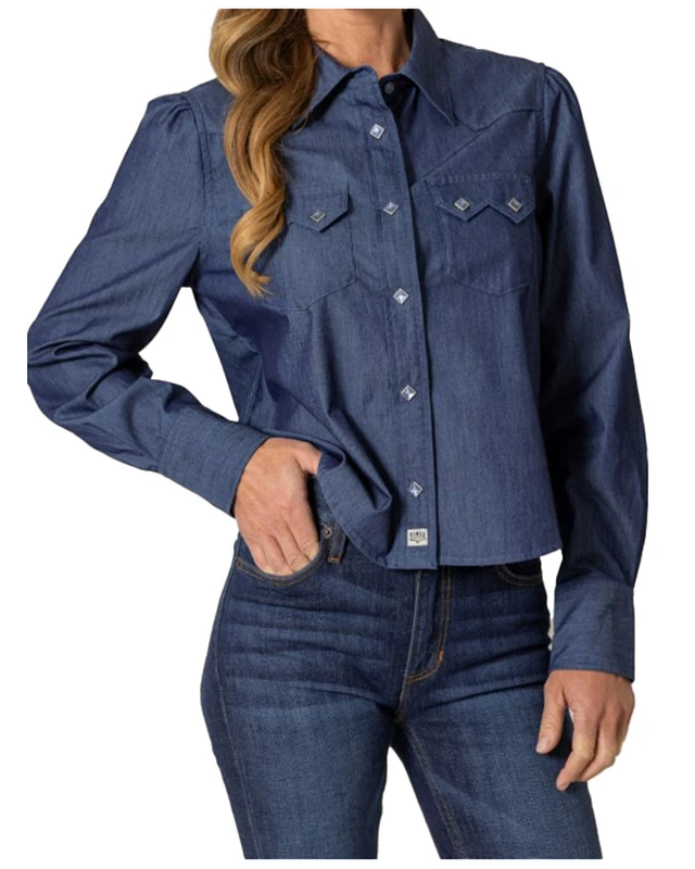 Kimes Ranch Women's Kaycee Denim Long Sleeve Western Pearl Snap Shirt
