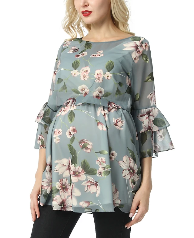 kimi + kai Maternity Floral Print Chiffon Nursing Blouse