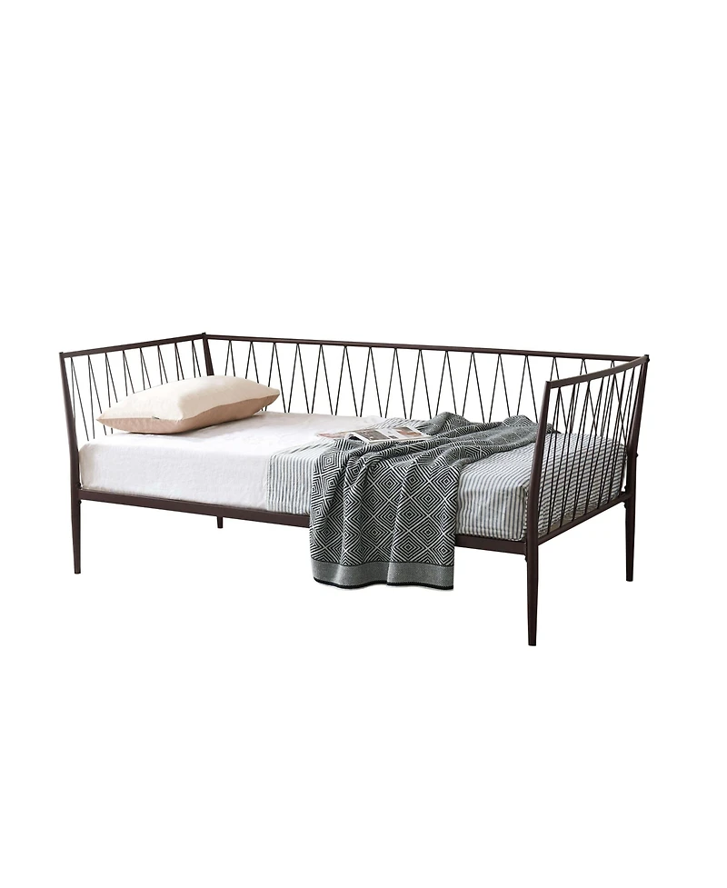 The Bella Metal Day Bed is a stylish and functional piece of furniture, featuring a minimalist design with a sturdy metal frame. Its sleek geometric pattern on the backrest and sides adds a modern touch, making it a perfect addition to any living room, guest room, or bedroom. This day bed is perfect for those who want a versatile, space-saving solution without compromising on style.