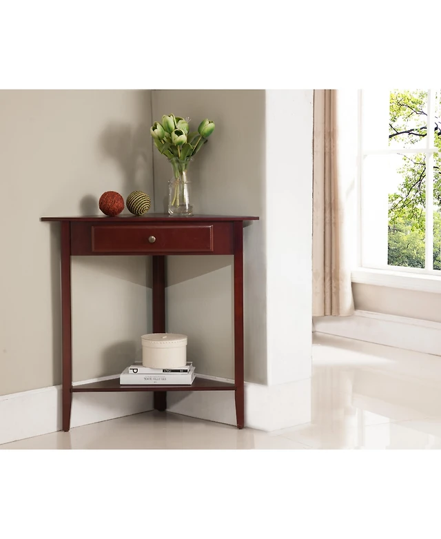 Kings Brand Furniture - Walnut Finish Wood Corner Sofa Accent Table with Drawer