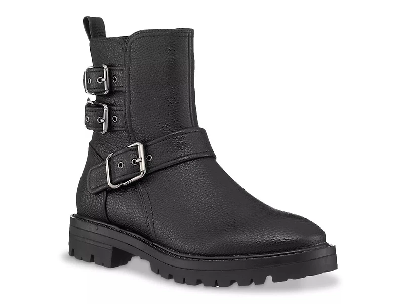 Boldly finish off any ensemble with the Kingsburg moto bootie from GC Shoes. A shapely bootie reimagined with triple buckle straps, it has a textured upper on top of a chunky block heel.