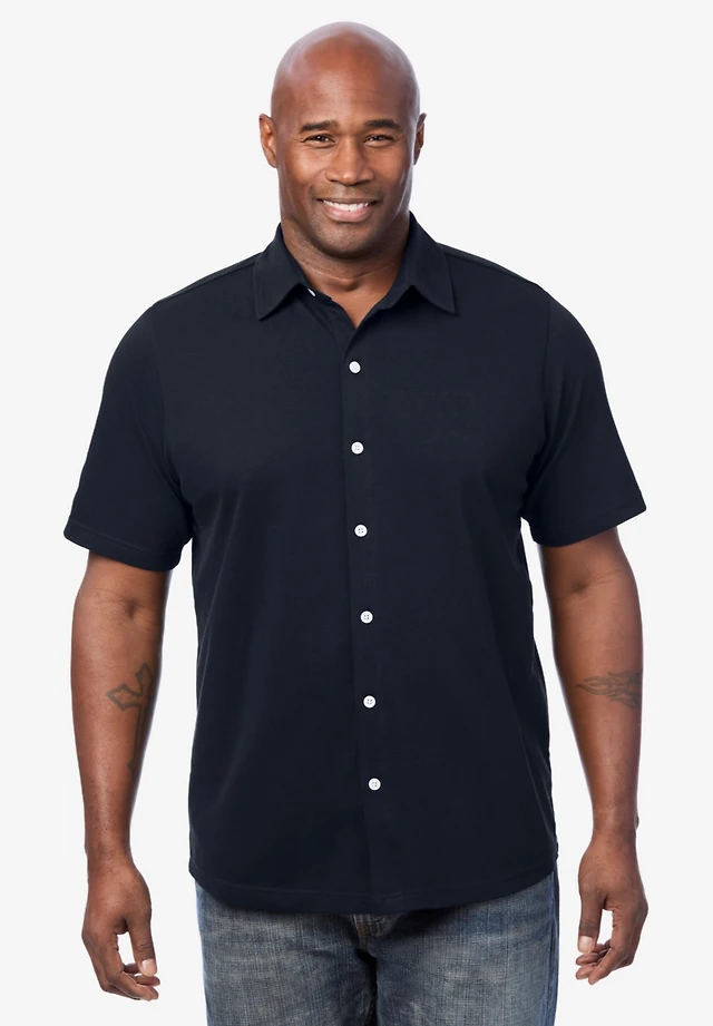 KingSize Big & Tall Lightweight Stretch Mesh Pique Button Down Shirt