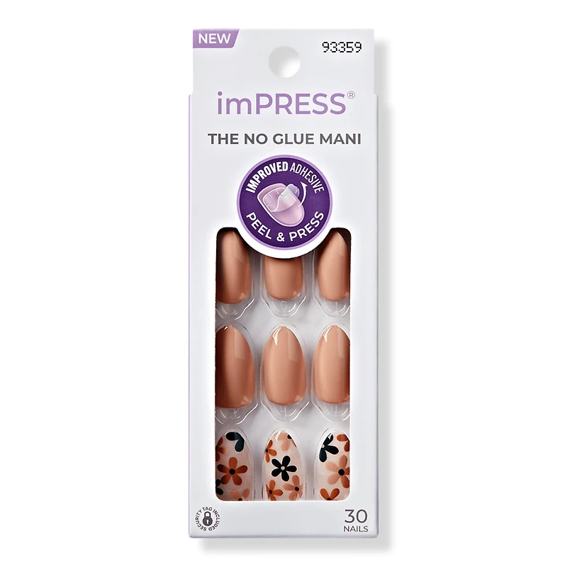 IMPRESS NAILS AS IT WAS. Features: The NO GLUE instant mani that is safe on natural nails. The EASIEST manicure with pre-applied adhesive - just peel, press & go. NEW & IMPROVED adhesive for up to 7-day superior hold. Includes: 30 Press-on Nails. Prep Pad. Mini Nail File. Manicure Stick. :