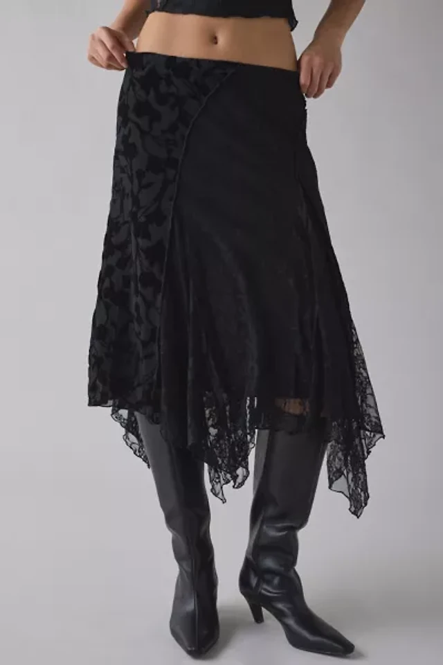 Kiss The Sky Marais Spliced Lace Hanky Hem Midi Skirt