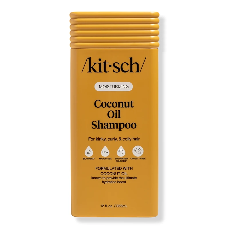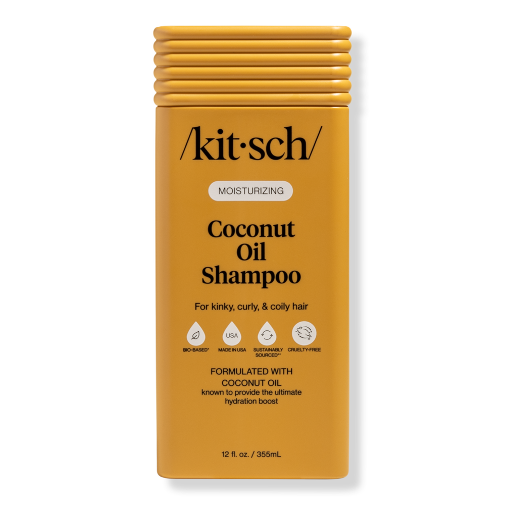 MOISTURIZING COCONUT OIL SHAMPOO 12.0OZ. Benefits: Formulated with Coconut Oil, known to provide the ultimate hydration boost. Cleanses and moisturizes kinky, curly, & coily hair. Leaves hair feeling softer, shinier, and easier to manage from root to tip. Deeply moisturizes. Formulated with Coconut Oil, known to provide the ultimate hydration boost, and leaves hair easier to manage. Bounce back to life. Helps hydrate and revive dry hair to promote soft, shiny curls. Brings balance. Hair needs both moisture and proteinmoisture keeps strands soft while protein adds strength. If your hair feels stiff or brittle from protein overload, alternating with Kitsch Moisturizing Coconut Oil Shampoo helps restore that balance.. Healthier-Looking Hair. Using both moisturizing and protein-rich products in the right ratio for your hair type can help reduce breakage, improve manageability, and keep your hair looking and feeling its best.. Features: Formulated with Coconut Oil, known to provide the ultimate hydration boost. 86% Bio-based formula. Free of parabens, phthalates, silicones, SLS & SLES. Made in USA, color-safe. Fully recyclable packaging and made with PCR (post-consumer recycled) material. Packaging may vary. :