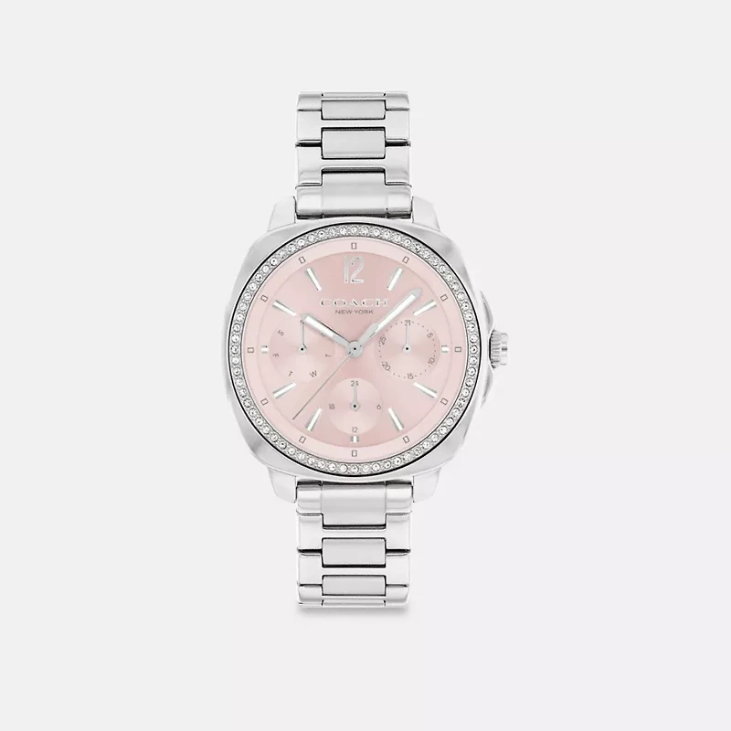 A modern style, the Kitt is a versatile timepiece made for work and play. Finished with a mix of numerical and polished stick markers, this rose gold tone chronograph bracelet watch features a sparkling crystal bezel and a sunray dial with three subdials marking seconds, minutes and hours.