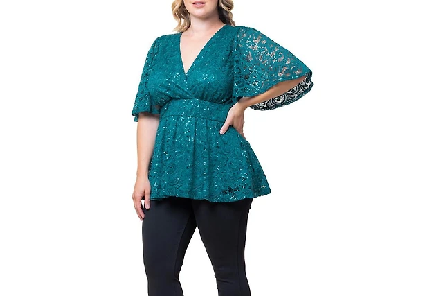Kiyonna Women's Plus Size Stardust Sequin Lace Top