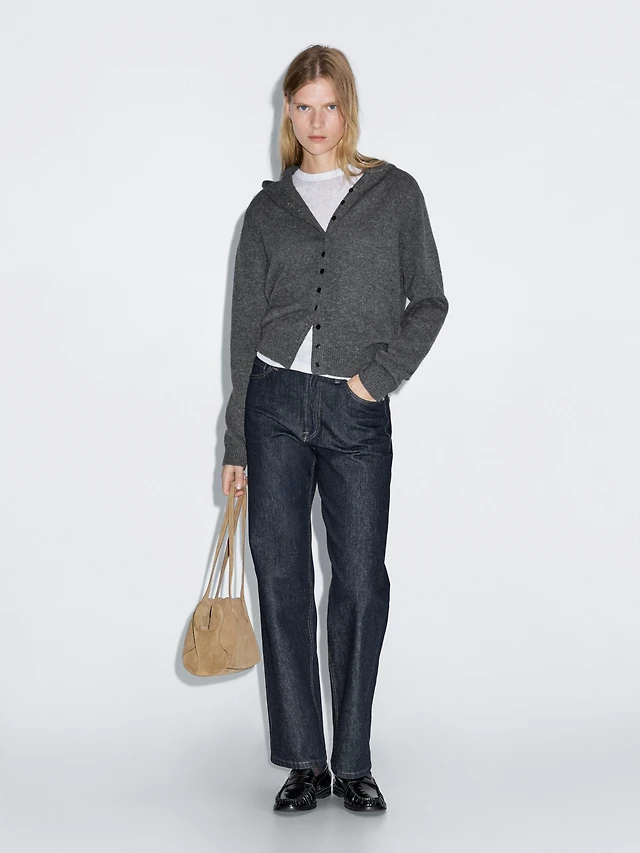 Knit 100% wool cardigan with hood