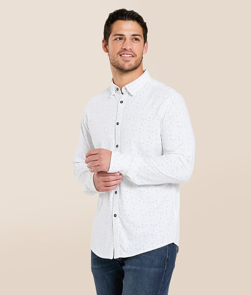 Printed button front shirt Athletic fit is larger in the shoulders, chest, waist and arm holes and is longer in the arms and body Contrast trim Breathable, moisture wicking fabric Performance stretch for a higher level of flexibility