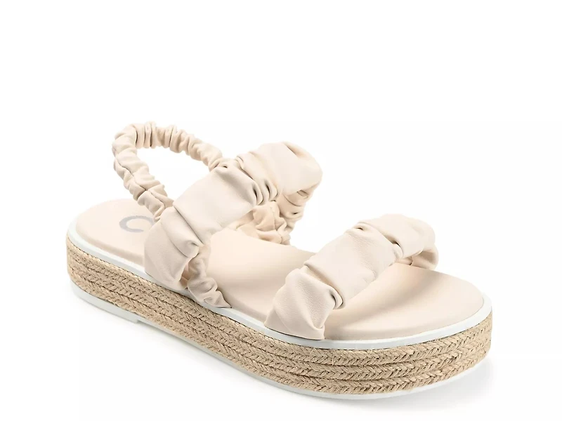The Knowles platform espadrille sandal from Journee Collection lends a boho-chic style featuring ruched vegan leather straps, and slingback closure to ensure a secured fit. This espadrille sandal has a 5 mm Journee Comfort System™ footbed to offer exceptional plush comfort.