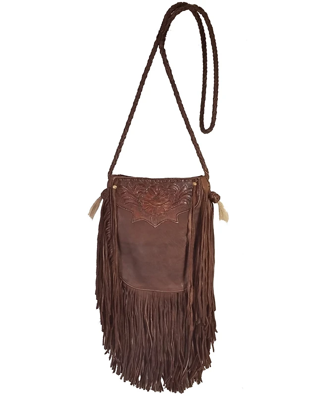 Kobler Leather Women's Brown Tooled Pouch Crossbody Bag