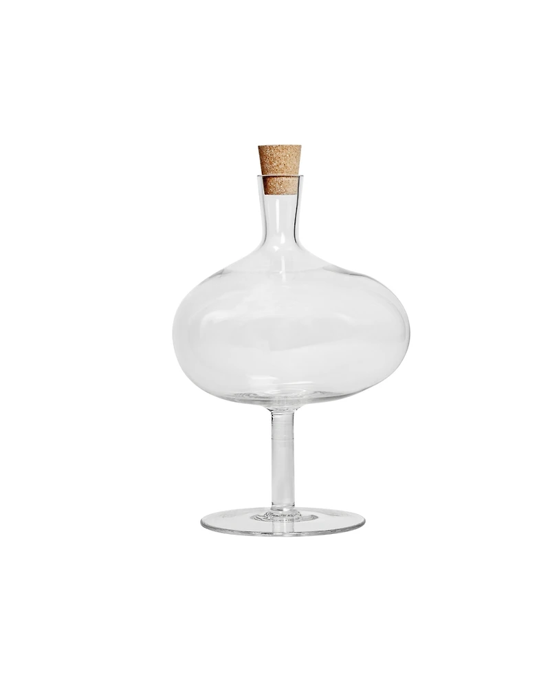 Like a tall wineglass, Bod balances confidently while its bowl captures the play of light. With their sheer and tall shape, the bottles are a piece of art that stands grounded in every home. The clear glass bottle on the foot can be used as a decorative object, container, or vase. The collection from Kosta Boda is handmade in Kosta, Sweden. The removable cork is included.