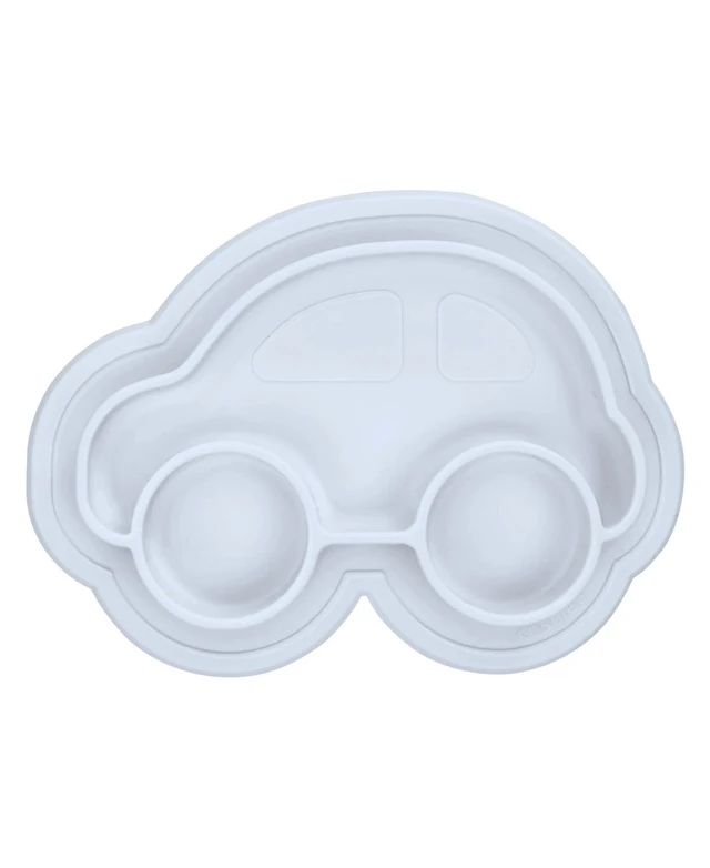 Kushies Toddler Silicone Divided Suction Plate, Unbreakable, Microwave Safe, Blue Car