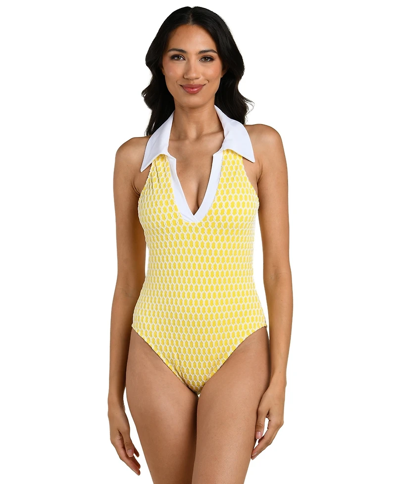 La Blanca Women's Prep & Paddle Collared V-Neck One-Piece Swimsuit