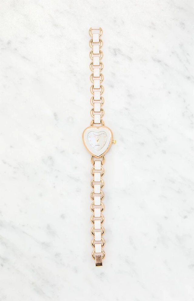 LA Hearts Gold & White Metal Heart Watch