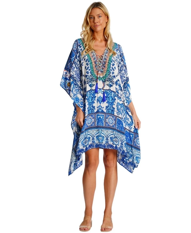 La Moda Clothing Women's Short Asymmetrical Kaftan Dress