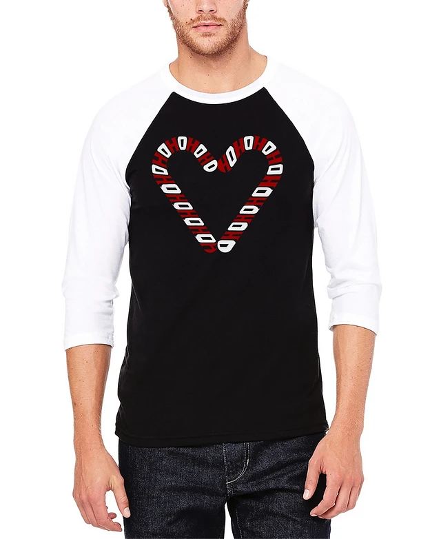 La Pop Art Men's Candy Canes Raglan Baseball Word T-Shirt