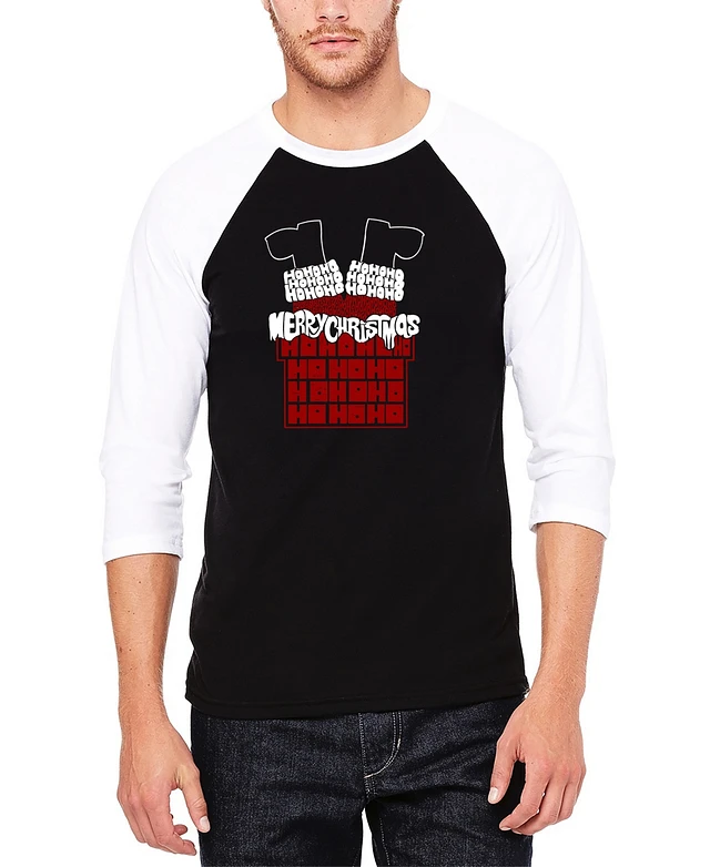 La Pop Art Men's Chimney Santa Raglan Baseball Word T-Shirt