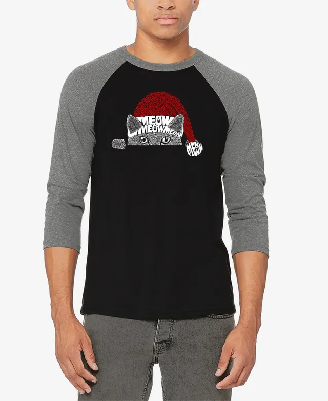 La Pop Art Men's Christmas Peeking Cat Raglan Baseball Word T-shirt