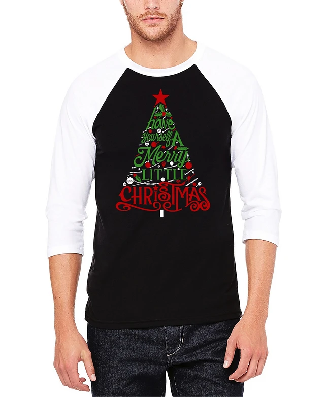 La Pop Art Men's Have Yourself a Merry Little Christmas Raglan Baseball Word T-Shirt