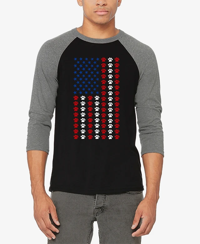 La Pop Art Men's Paws Flag Raglan Baseball Word T-Shirt