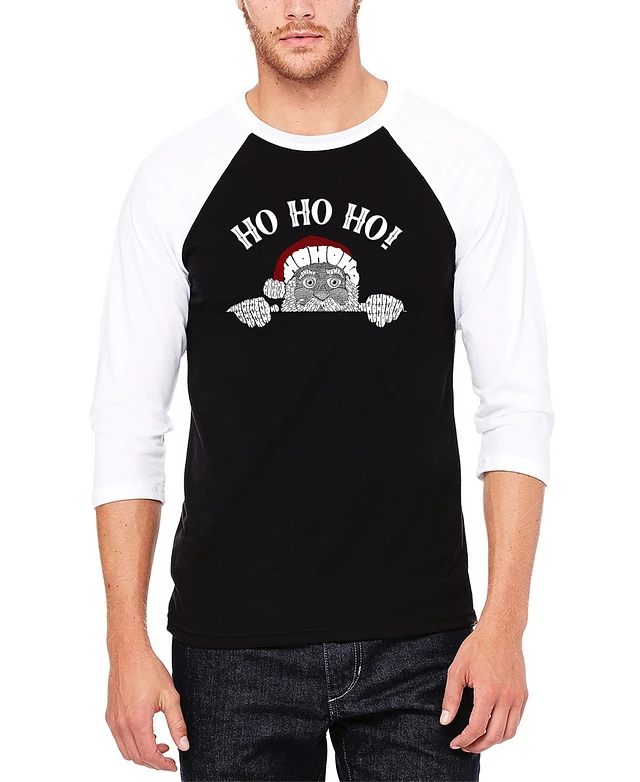 La Pop Art Men's Peeking Santa Raglan Baseball Word T-Shirt