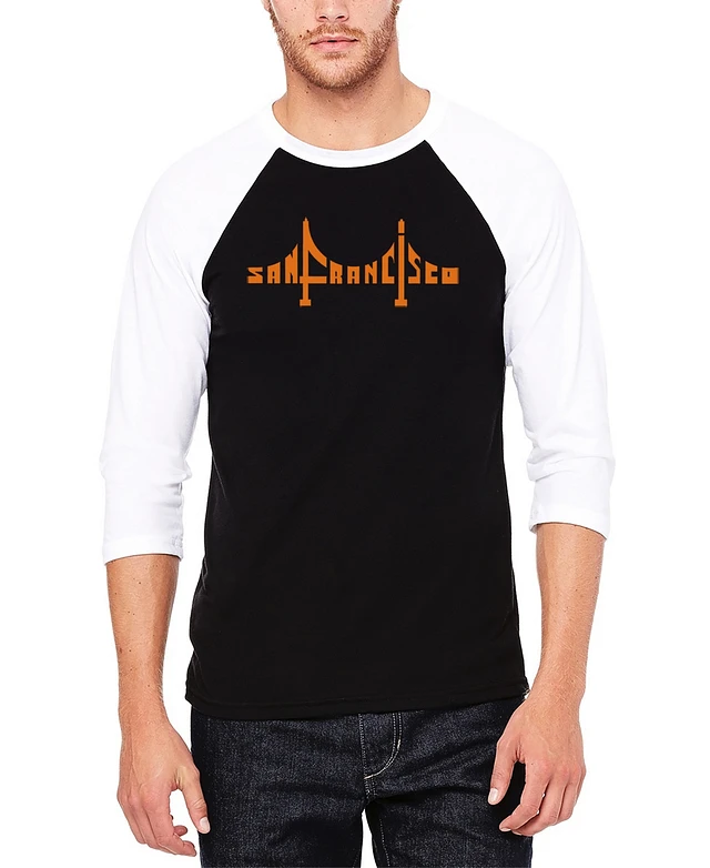 La Pop Art Men's Raglan Baseball 3/4 Sleeve San Francisco Bridge Word T-shirt