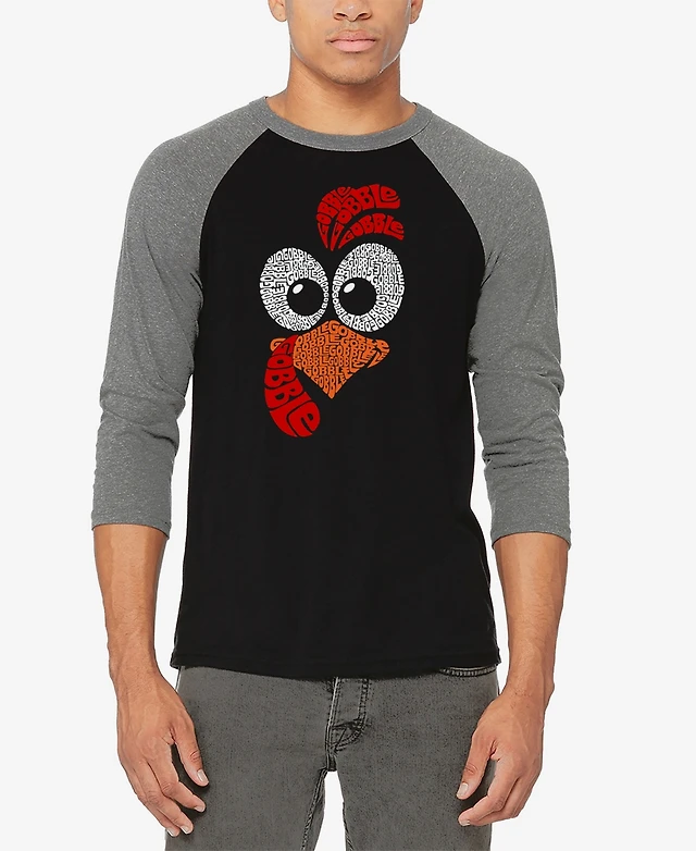 La Pop Art Men's Turkey Face Raglan Baseball Word T-Shirt