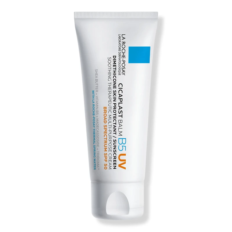 CICAPLAST BALM SPF50 1.35OZ. Benefits: Provides immediate and long-lasting, all-day hydration for cracked, chapped, and chafed skin. Broad spectrum SPF 50 helps protect skin from the sun. Key Ingredients: Tribioma, helps restore the skin's natural barrier. Shea Butter, known for its soothing and restoring. Madecassoside, used as a therapeutic agent in wound healing. Formulated Without: Fragrance. Parabens.