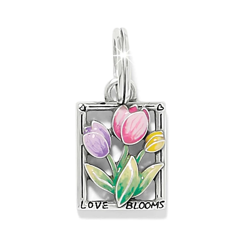 Petal pink and iris hues color this hand-enameled charm inspired by the tulip fields of the Provence area of France. An uplifting message that “love blooms” makes it a daily inspiration.