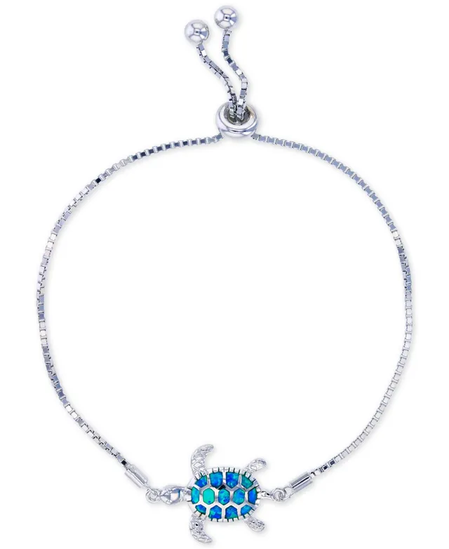 Lab-Created Blue Opal Turtle Bolo Bracelet in Sterling Silver