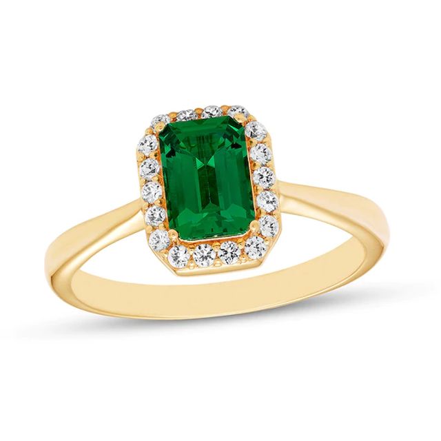 Lab-Created Emerald Ring Lab-Created Sapphires 10K Yellow Gold