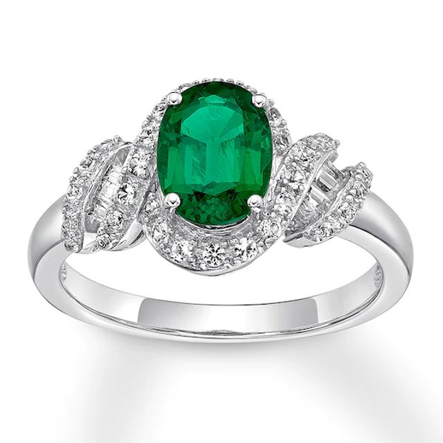 Lab-Created Emerald Ring Lab-Created Sapphires Sterling Silver