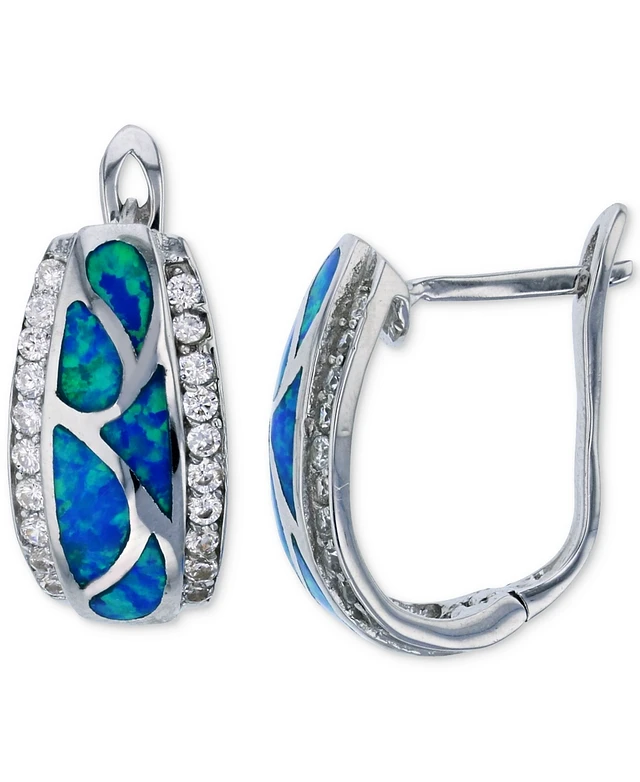 Lab-Grown Blue Opal (5/8 ct. t.w.) & Cubic Zirconia Hoop Earrings in Sterling Silver