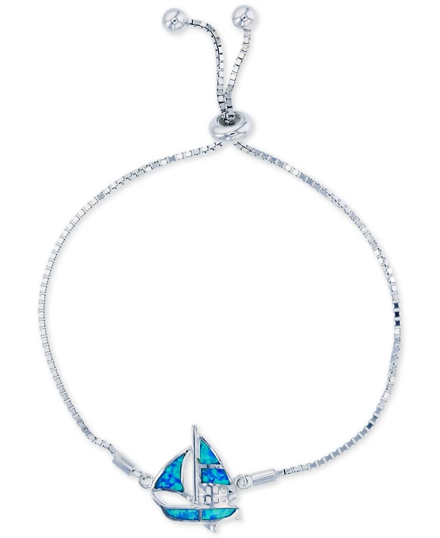 Lab-Grown Blue Opal Sailboat Bolo Bracelet in Sterling Silver