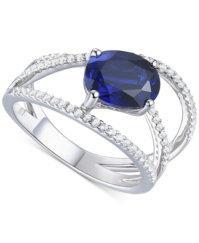 Lab-Grown Sapphire (2-1/2 ct. t.w.) and White (1/2 Ring Sterling Silver