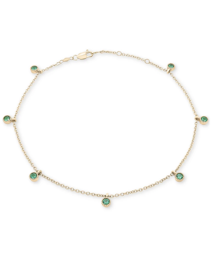 Lab-Grown Emerald Dangle Bezel Ankle Bracelet (1/5 ct. t.w.) in 14k Gold-Plated Sterling SilverLab-Grown Emerald Dangle Bezel Ankle Bracelet (1/5 ct. t.w.) in 14k Gold-Plated Sterling SilverLab-Grown Emerald Dangle Bezel Ankle Bracelet (1/5 ct. t.w.) in 14k Gold-Plated Sterling Silver